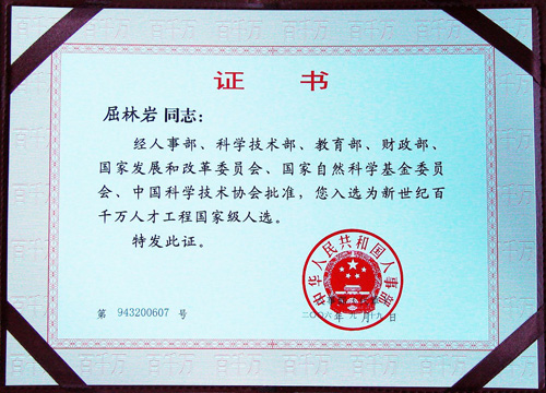 5月29日上午,湖南省人事厅专业技术人员管理处邵伏先处长、周光明副处长、长沙市人事局戴崇华副局长一行在我校办公楼二楼会议室为我校副院长屈林岩教授颁发了由国家人事部、科技部、教育部、财政部和国家发展委联合授予的“新世纪百千万人才工程国家级人选”证书。本批次我省共有12人入选,我校屈林岩教授位列其中。
