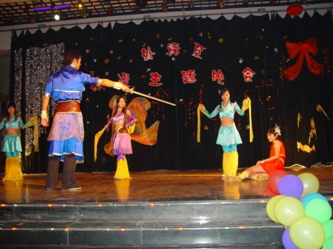 “梦幻的氛围,流转的灯光,明艳的服饰,摇曳的舞姿”是动漫主题晚会的核心词组。温婉的背景音乐中流淌着泛漫天河的水声,观众们从长大外语系、湖南第一师范以及湘潭大学倾情演出的《灰姑娘》、《封神榜》、《火影忍者》等节目中隐约见到一位清丽盘髻的日本女子撑着油纸伞端步拂过灿然绽放的樱花林,带着动漫走进了华夏大地,走入了长大校园。日籍教师正本悦子一曲活泼的日本民歌让动漫主题晚会达到了最高潮,现场的气氛热闹非凡。