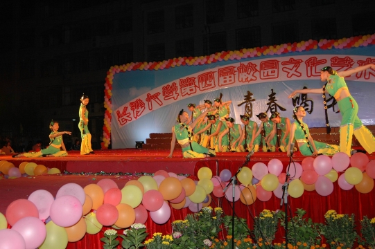 5月18日晚,雨后的长沙大学绿草如茵,清风怡人,长沙大学第四届校园文化艺术节开幕式在田径场举行。校领导、各系部、处室主要负责人、外教、师生代表近4000多人观看了整个开幕式,真是天时地利人和!