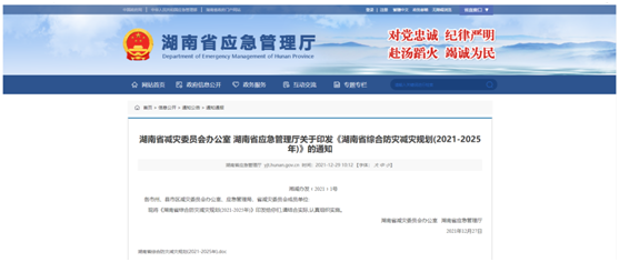 近日,湖南省减灾委员会办公室、湖南省应急管理厅正式发布了关于组织实施《湖南省综合防灾减灾规划(2021-2025年)》(以下简称《规划》)的通知。