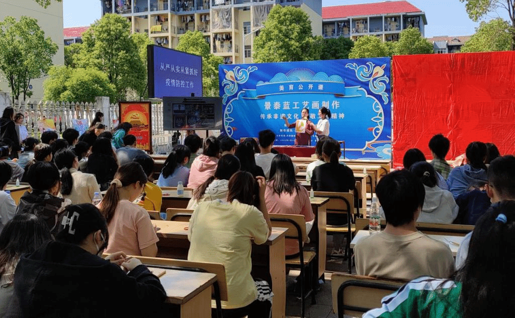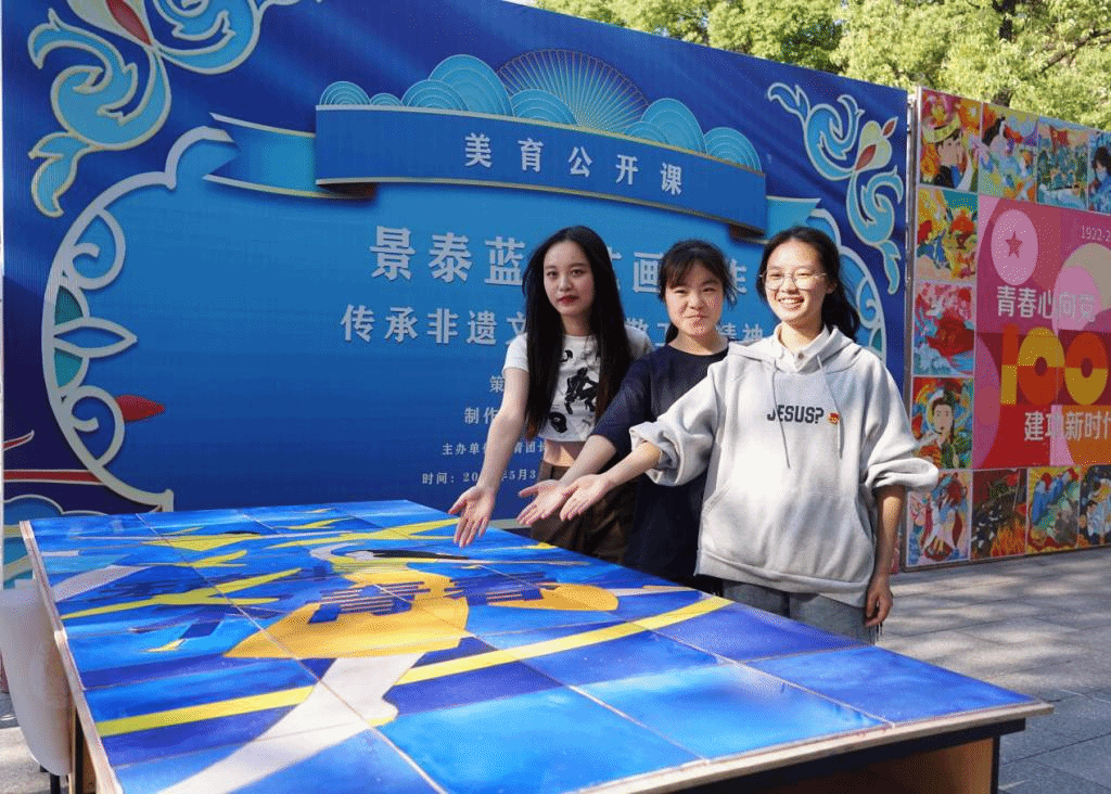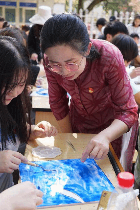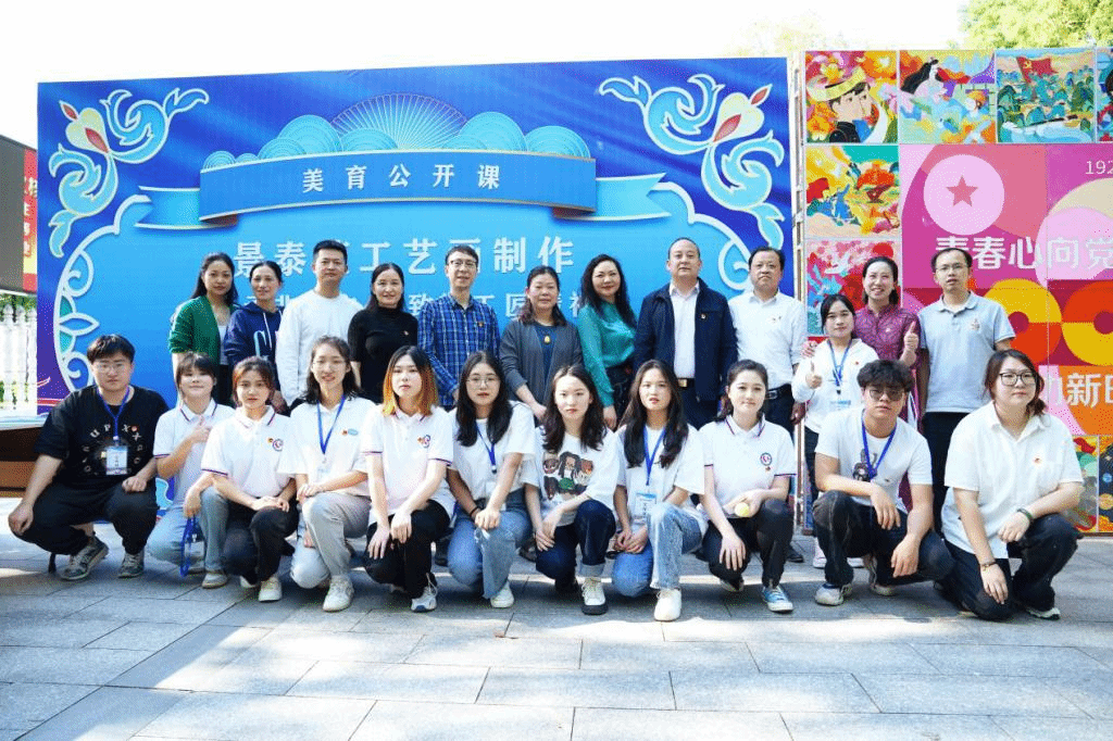 党委委员、副校长曾广胜,艺术设计学院党总支书记舒欣,艺术设计学院院长胡友慧、副院长黄佳,校团委副书记尹方园等领导莅临现场观摩。与会领导对美育公开课赞赏有加,并为同学们DIY创作的景泰蓝工艺画作品揭幕。