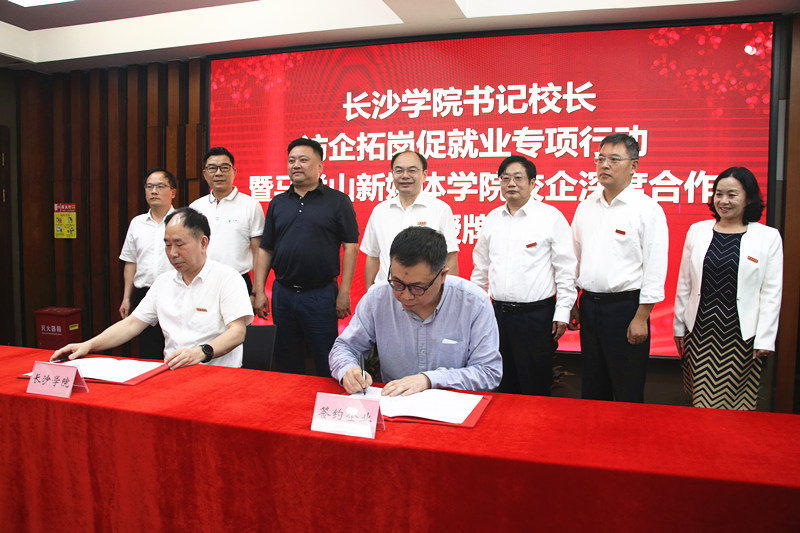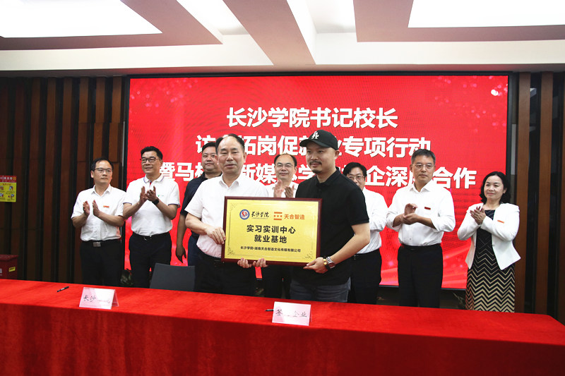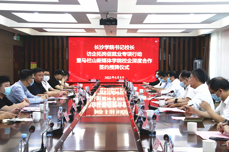 为进一步搭建校企合作平台,深化产教融合,拓宽毕业生就业渠道,5月5日下午,我校党委书记杨小云,党委副书记、校长黄立宏带队赴马栏山视频文创园开展访企拓岗促就业专项行动,并举行马栏山新媒体学院校企深度合作签约授牌仪式。马栏山视频文创园党工委书记邹犇淼,党工委委员、管委会副主任胡朝晖,我校副校长陈世平,党委委员、副校长张世英,相关职能部门负责人和二级学院党总支书记、院长出席活动。