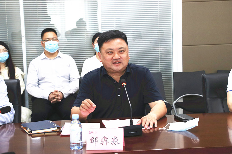 邹犇淼代表马栏山视频文创园向参会领导、我校参会人员、企业家们表示欢迎,并简要介绍了园区的基本情况以及未来发展规划。他表示,省委、市委“强省会”战略旗帜鲜明地提出,支持园区与高校共建联合创新中心,建好马栏山新媒体学院,园区将加速产业集聚、企业集聚、人才集聚、创意集聚,聚焦打造“具有全球影响力的数字视频产业链基地和媒体融合新地标”。马栏山具有巨大的人才需求空间,未来校地企必将开展更加深入、务实、长远的合作,在科技创新、人才培养方面取得更多更好更实的成果。园区将一如既往地搭建桥梁纽带,深化供需对接,做好协调服务,支持学校和企业深度合作,协同育人,在新时代“强省会”赶考之路上,携手扛起新使命、共同谱写新篇章。