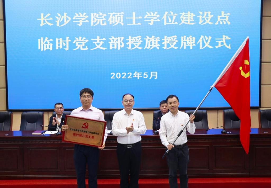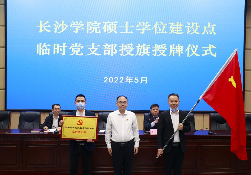 何利华宣读了学校党委《关于成立硕士学位建设点临时党支部的决定》,杨小云分别为6个硕士学位建设点临时党支部授旗授牌,马克思主义理论硕士学位建设点临时党支部书记蒋晓东作了表态发言。