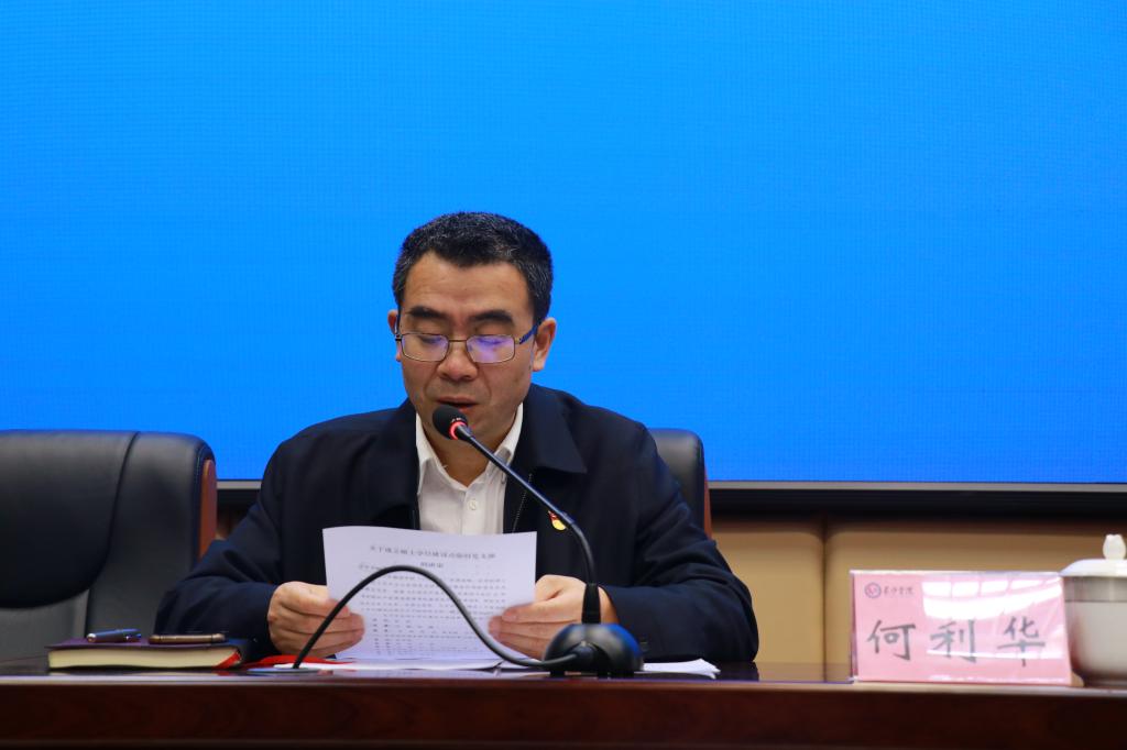 党委委员、组织统战部部长何利华宣读学校党委《关于成立硕士学位建设点临时党支部的决定》