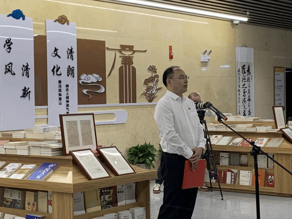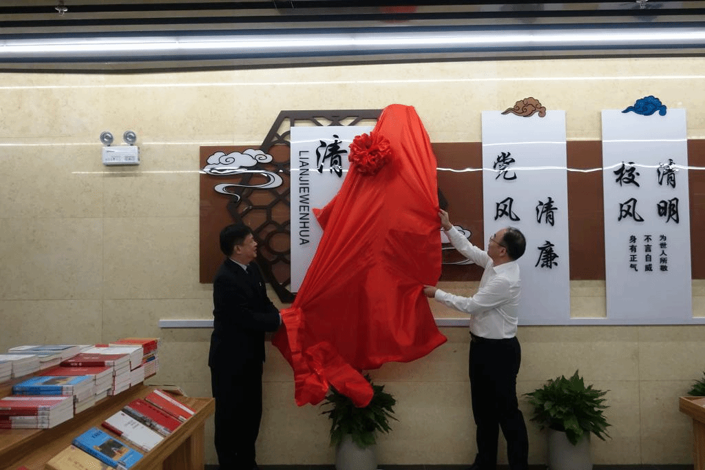 党委书记杨小云、党委副书记汤文胜为图书馆“清廉空间”揭幕