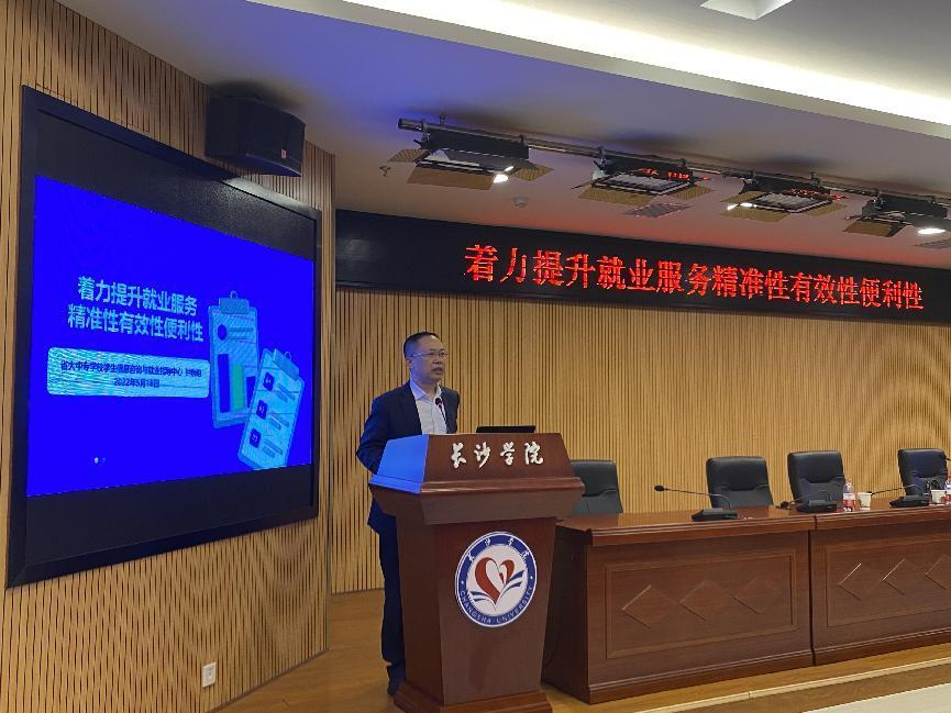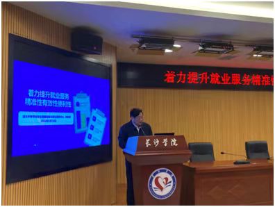 会上,省大中专学校信息咨询与就业指导中心主任钟秋明以《着力提升就业服务精准性有效性便利性》为题进行就业工作专题辅导讲座,钟秋明在讲座中首先传达了学习贯彻全国普通高等学校毕业生就业创业电视电话会议精神和学习贯彻国务院办公厅《关于进一步做好高校毕业生等青年就业创业的通知》的重要内容,接着分析了我省高校毕业生就业面临的挑战,并用大数据对我校就业质量进行解读。钟秋明从全员全力、责任心、有温度的工作、合理预期、真实是底线等五个方面着力提升就业服务精准性有效性便利性。讲座内容专业、翔实,对我校的就业工作和专业建设具有很强的指导性。