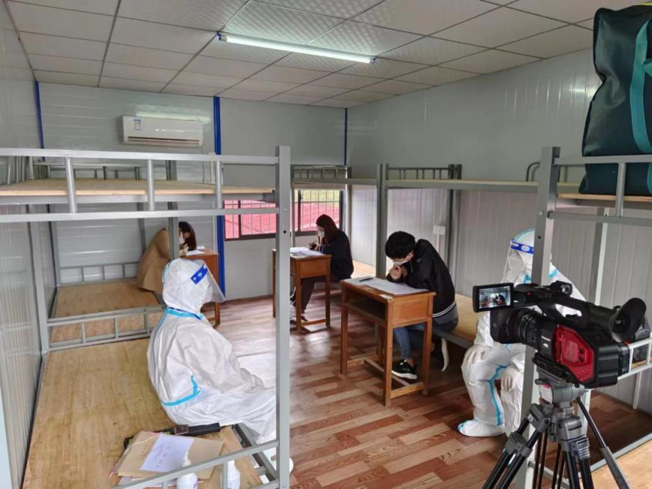 我校严格落实防疫措施,考前多次开展考生健康摸排,严格按照防疫要求针对不同考生设立了校外隔离考场、校内隔离考场、备用考场,并组织大批党员志愿者负责监考(巡考)工作。