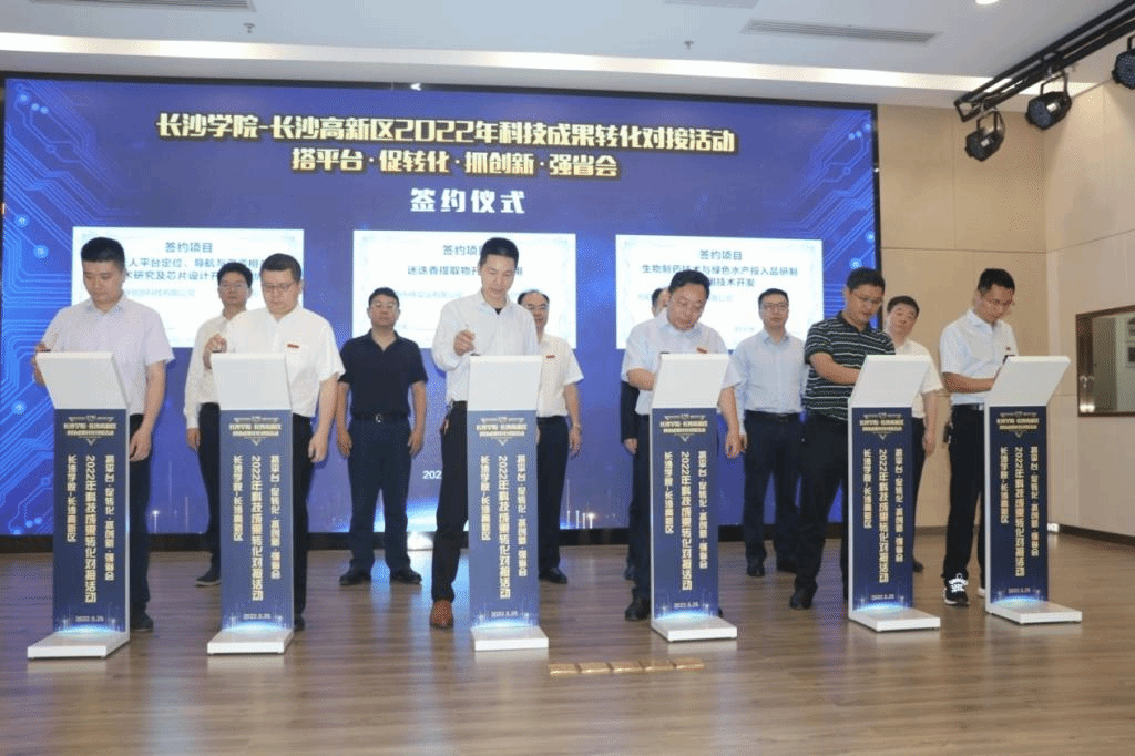 5月25日上午,长沙学院—长沙高新区科技成果转化对接活动在岳麓山国家大学科技园举行,我校教师团队主持的9个项目分别找到了“婆家”,现场与企业成功签约,签约总金额达5116万元。