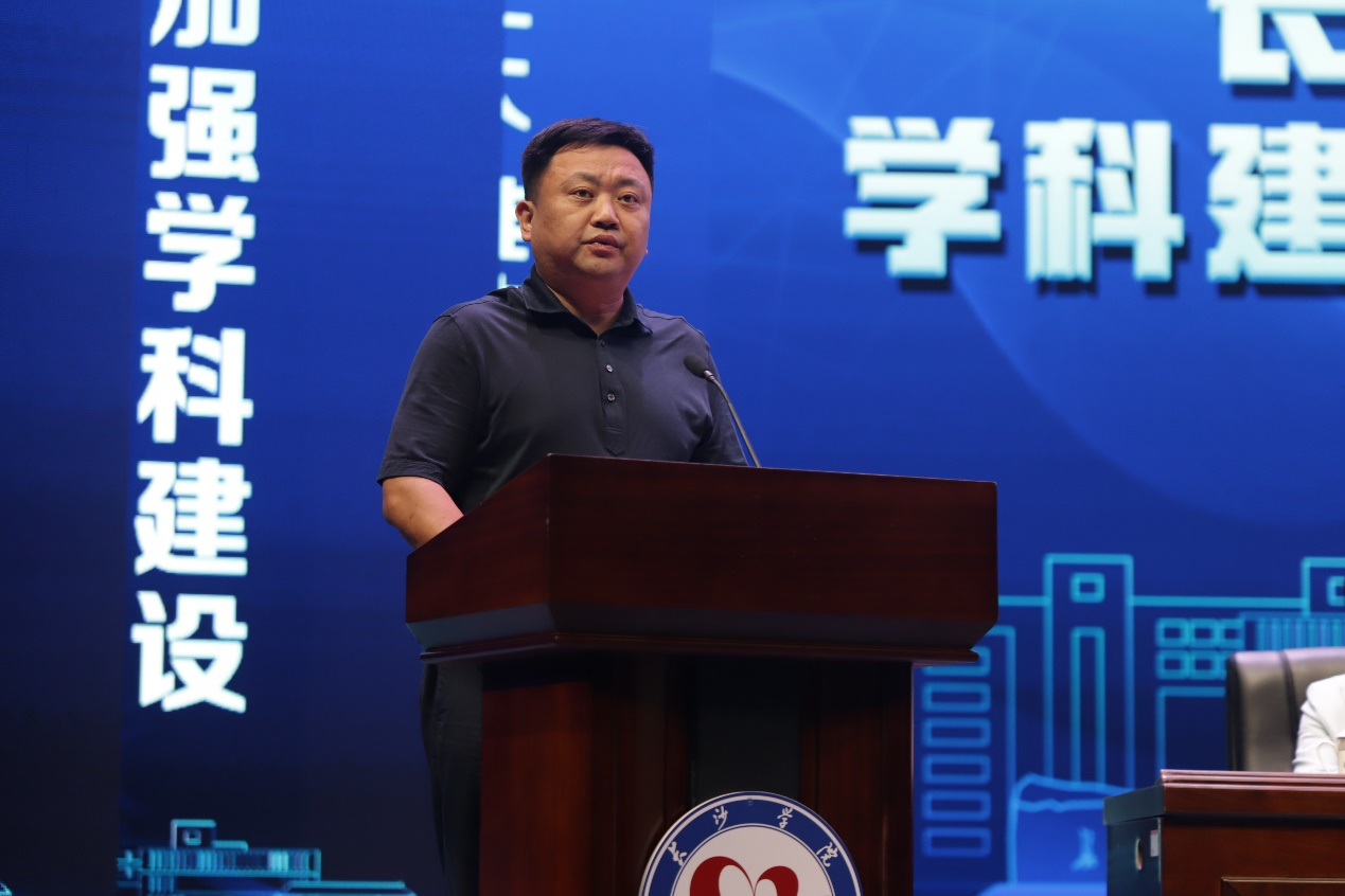 党委副书记汤文胜宣读了《长沙学院关于调整相关二级学院的通知》。成立2个新的二级学院,标志着长沙学院的二级学院数量由14个增设到16个,学科特色和优势专业建设更趋精细化、精深化、精准化。新增的二级学院旨在聚焦长沙22条产业链当中的数字经济、新储能材料等重点领域,对标对表服务地方经济社会发展,将为校地合作、校企合作奠定良好的智力基础,展现了长沙学院应有的社会担当。