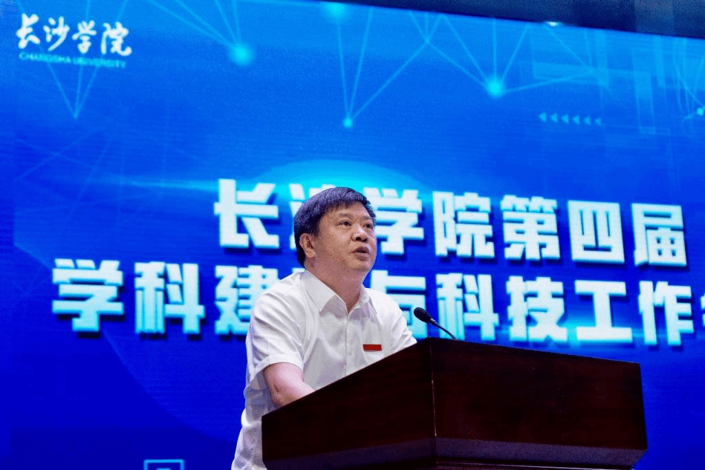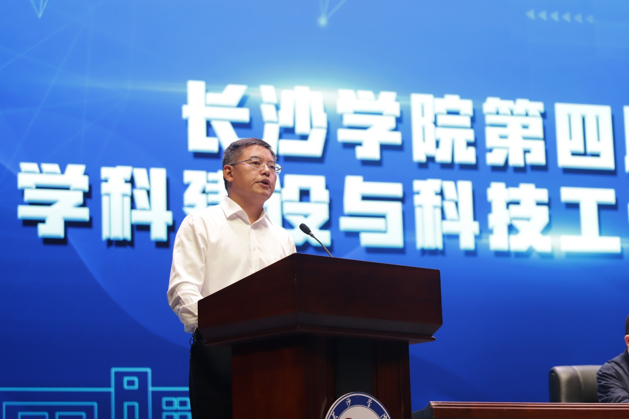 党委书记杨小云发表总结讲话。他表示,长沙学院作为长沙市政府人民政府举办的唯一一所本科高校,奋勇当先、不遗余力地服务于“强省会”战略,是义不容辞的责任和使命,并结合我校实施“强省会”战略强调了三点意见:一要强化学科意识,深刻把握学科建设和科技工作对于学校发展的重大意义,充分认识学科建设和科研工作是服务“强省会”战略的客观需要、是决战决胜“升硕”的迫切要求、是提升学校育人能力的内在动力;二要坚持“三个聚焦”,聚焦地方性、紧扣地方战略需求,聚焦特色化、聚力打造优势学科,聚焦高水平,提升学科和科研实力,锚定学校学科建设和科技工作高质量发展的正确方向;三要强化“三大保障”,通过强化人才支撑、创新体制机制、加强条件保障,全力推动学校学科建设与科技工作更高质量发展。