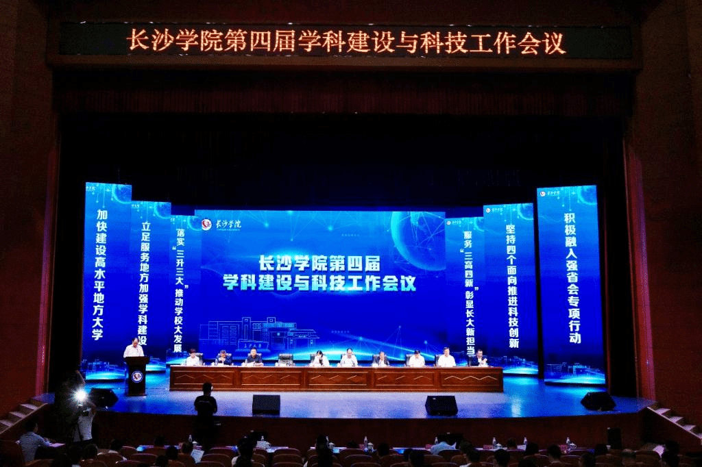 5月27日,我校隆重召开第四届学科建设与科技工作会议,省委教育工委委员、省教育厅党组成员、副厅长左清,长沙市科技局党组书记、局长郭塨,马栏山(长沙)视频文创园党工委书记邹犇淼,省教育厅科技处处长王红冰,马栏山(长沙)视频文创园党组成员、管委会副主任胡朝晖,我校全体在家校领导出席会议。会议分两个阶段,分别由党委书记杨小云,党委副书记、校长黄立宏主持。