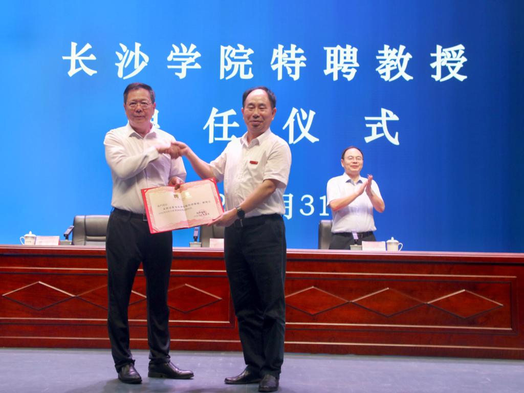 党委副书记、校长黄立宏为张严同志颁发特聘教授证书