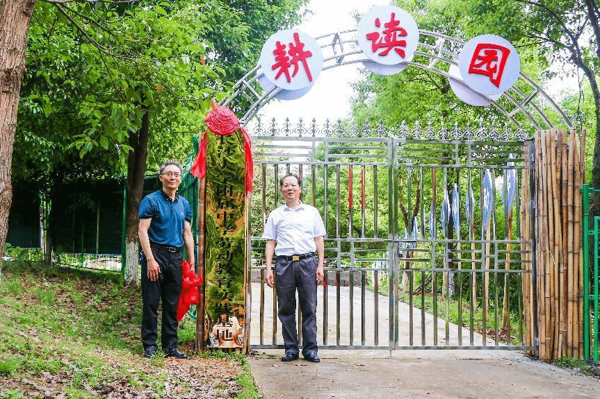 关工委常务副主任杨兴龙和附中校长陆佳宾共同为“耕读园”劳动教育实践基地揭牌