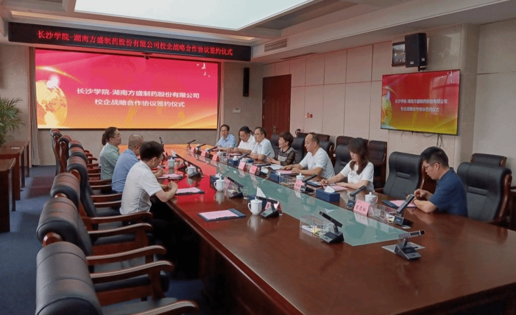 为进一步加强“生物与医药”硕士点建设,切实将校企合作项目落实落地,6月10日下午,我校在长盛楼4001会议室与湖南方盛制药股份有限公司签署校企战略合作协议。学校党委委员、纪委书记丁文,党委委员、副校长曾广胜,湖南方盛制药股份有限公司总经理郭建军,人力资源副总经理陆翠魁,总经理助理周文,招聘管理室经理喻敏,以及我校“生物与医药”硕士点带头人、生物与化学工程学院负责人参加了签约仪式。签约仪式由曾广胜主持。