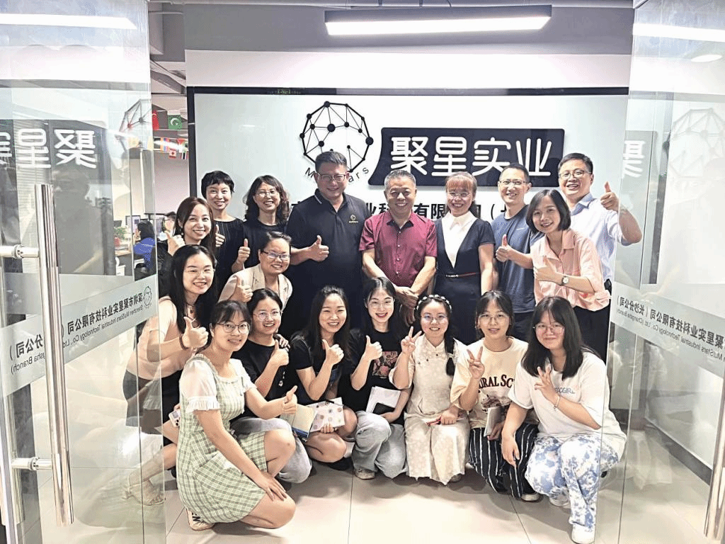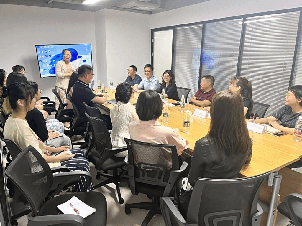 在深圳市聚星实业科技有限公司举行的座谈会上,公司负责人张明和公司亚洲部负责人、外国语学院2009届校友周艳芳等介绍了公司的历史与现状、人才需求、发展前景等情况。在该公司就业的7位外国语学院2022届校友也参加了座谈会,校友代表汇报了工作以来的收获和体会,表达了对母校培养的感恩之情。本学期该公司派遣了5位讲师来外国语学院共同指导为期2周的英语专业认识实习,双方也就实习情况进行了总结交流,并举行了实习基地授牌仪式。胡石明仔细询问了公司的经营状况,感谢公司对我校实习就业工作的支持,勉励毕业生校友多加学习、快速成长,并希望双方以此次交流为契机,推进产学合作育人,拓宽实习、就业的合作广度和深度。