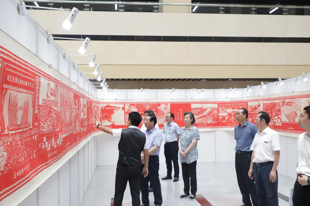 杨泰波一行先后参观了学校四立书屋、百年党史百米剪纸长卷展览,现场听取了学校党委书记杨小云、党委副书记、校关工委主任汤文胜,校关工委常务副主任杨兴龙对学校关工委工作的汇报。观看了由学校关工委创排、以第一的成绩获得2021年教育部关工委最佳舞台剧《唱支山歌给党听》。