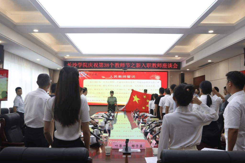 座谈会上,马栏山新媒体学院孙文越带领31名新教师面向国旗庄严宣读人民教师誓言,并签下师德承诺书——努力成为一名有理想信念、有道德情操、有扎实学识、有仁爱之心的人民教师!黄立宏为退休教师颁发荣休证书,学生代表为他们献上鲜花,致以节日的问候和祝福!