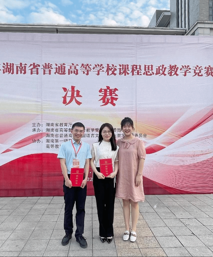 9月16日,由湖南省教育厅主办的2022年湖南省普通高等学校课程思政教学竞赛现场决赛在湖南第一师范学院落下帷幕。全省49所高校的181名专业教师在决赛中同场竞技各展风采,我校四名教师喜获佳绩:机电工程学院吴垚老师、马栏山新媒体学院梁湘梓和曾雨欣老师分别荣获二等奖,外国语学院刘晓露老师荣获三等奖。