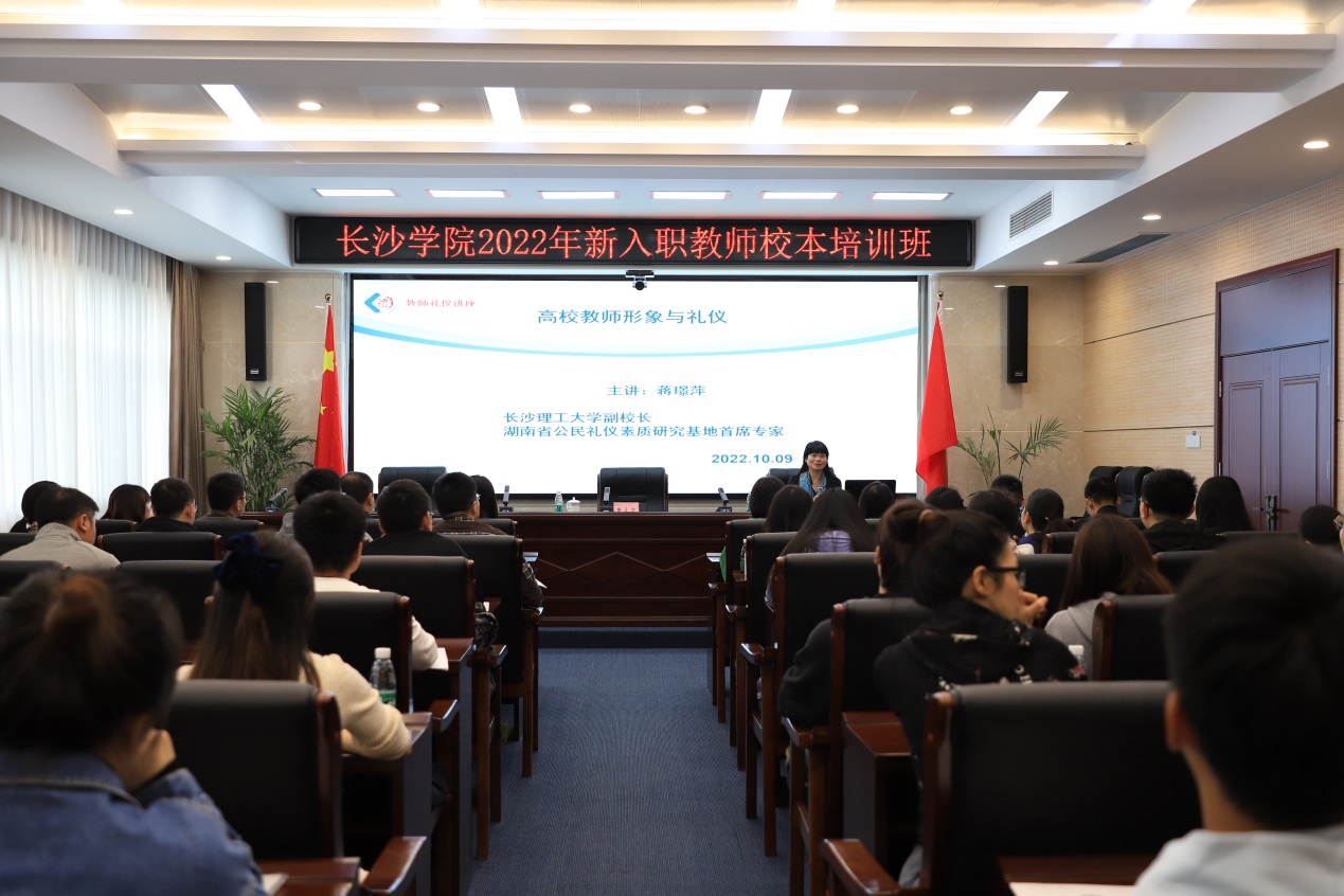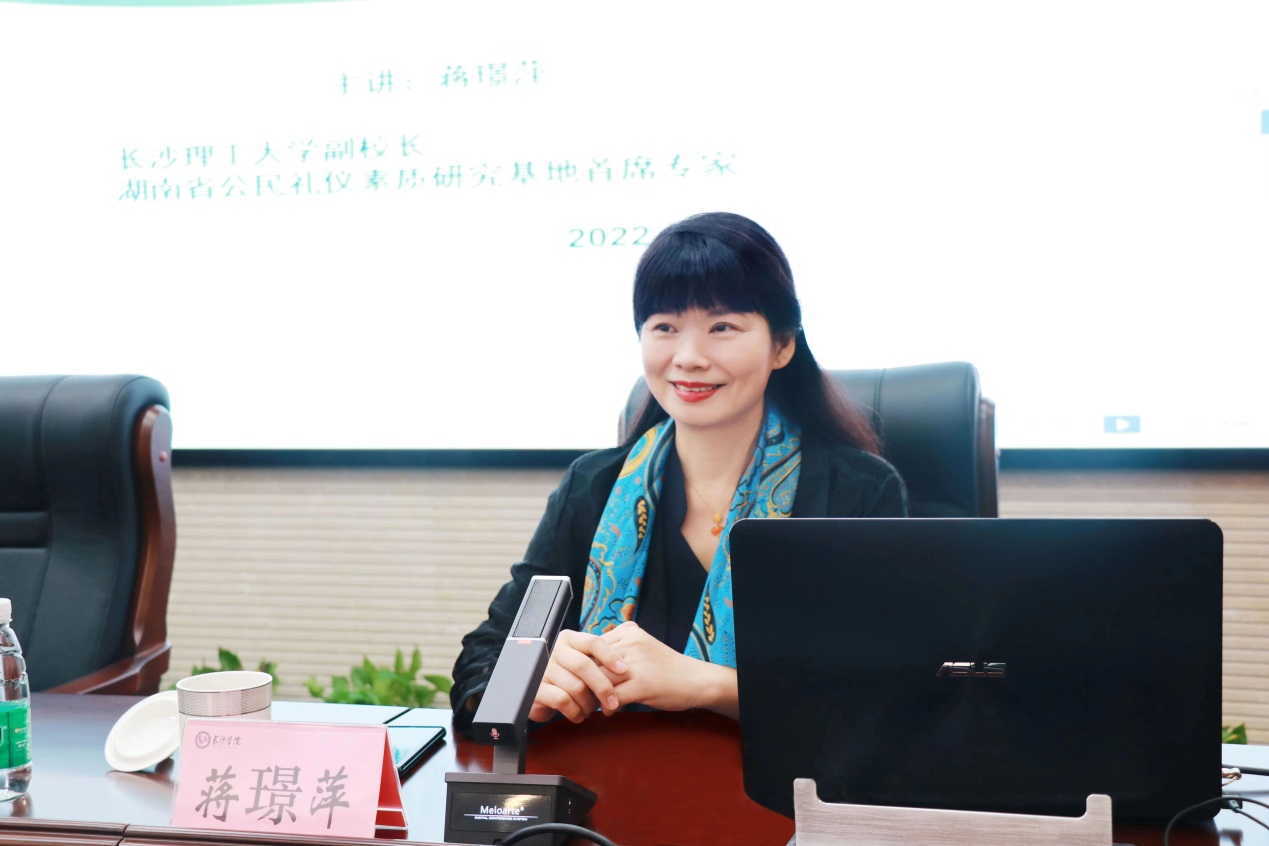 10月9日上午,长沙理工大学副校长、湖南省公民礼仪素质研究基地首席专家蒋璟萍教授,应邀到我校为2021-2022学年新入职教师作《高校教师形象与礼仪》专题讲座。校党委副书记、校长黄立宏主持讲座。