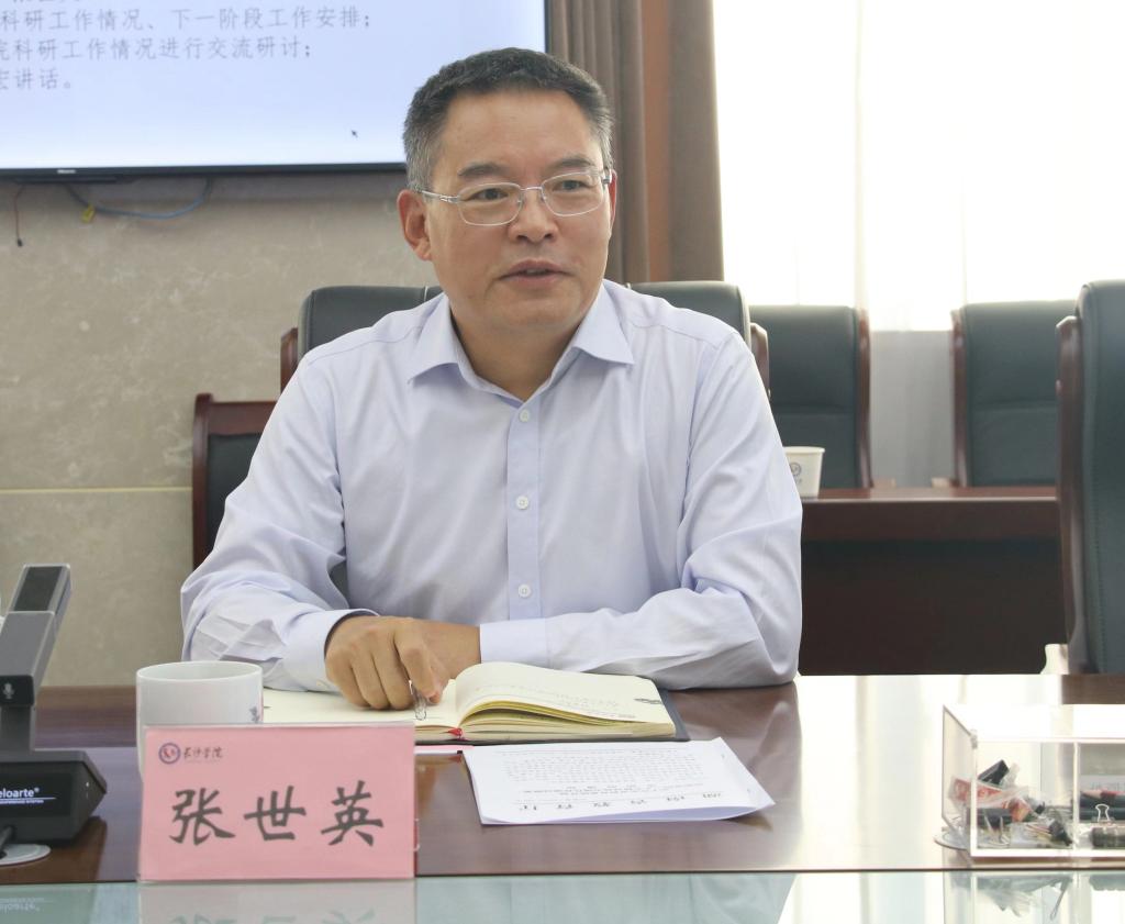 张世英副校长针对如何开展下一步科研工作提出三点意见:一是要提前部署,做好国家级科研项目的申报工作;二是认真贯彻落实党的二十大精神,充分发挥学校智库作用,为党和政府献计献策,同时开展好国家科学基金项目的选题工作;三是规范使用科研经费,做好科研诚信建设工作。