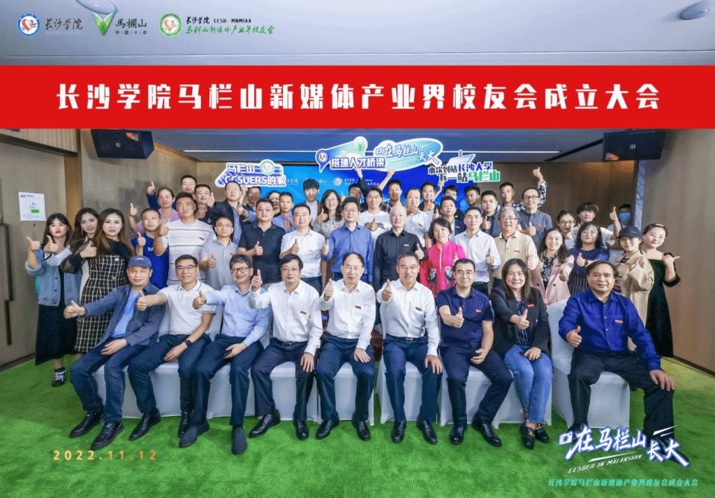 (长沙学院马栏山新媒体产业界校友会成立大会与会人员合影留念)
