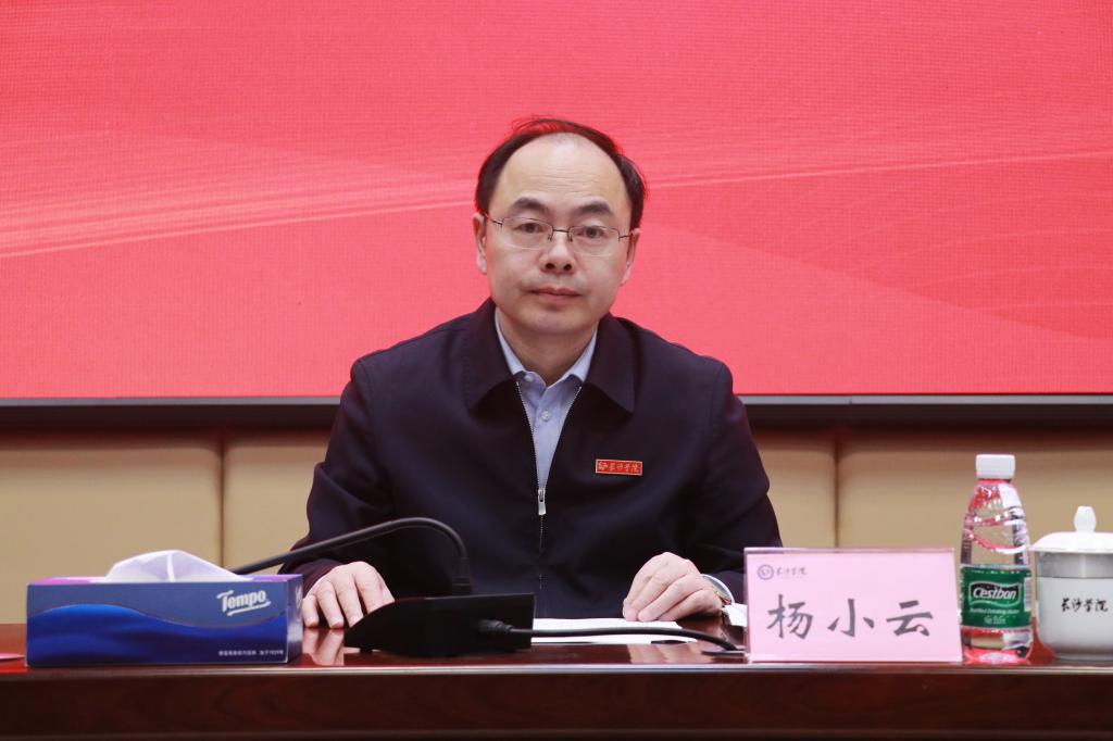 会上,杨小云和党委副书记刘寒波分别传达学习了习近平总书记在全国两会期间发表的系列重要讲话精神、全国两会精神及湖南省有关会议精神。