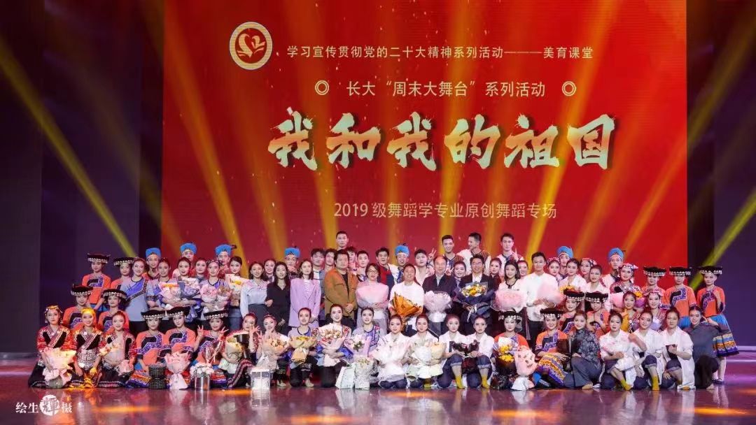 3月31日晚,由我校音乐学院师生历时四年创作的原创舞蹈专场《我和我的祖国》,在学生活动中心首演。该演出是学校学习宣传贯彻党的二十大精神的系列活动之一,也是长大“周末大舞台”系列活动的首场演出,由音乐学院2019级舞蹈专业全体同学完成。党委副书记、校长黄立宏,党委委员、纪委书记丁文,党委委员、副校长曾广胜,湖南省舞蹈家协会秘书长杨晓刚,湖南文艺出版社副主编曾月以及湖南省大剧院、长沙市歌舞剧院、长沙市音乐厅等专业院团负责人和学生家长到场观看,近千人共享视听盛宴。