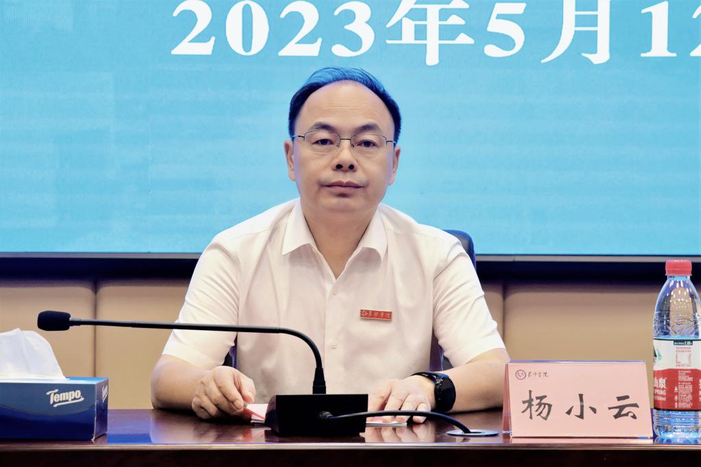 5月12日下午,长沙学院2023年安全稳定暨武装工作会议在致远楼学术报告厅召开,党委书记杨小云出席会议并讲话。他强调,2023年是学校“升硕”决胜之年,必须坚决维护好校园安全稳定,要推动构建纵向到底、横向到边的安全稳定工作责任体系,形成事事有人抓、处处有人管的安全稳定工作新局面。会议由党委副书记、校长黄立宏主持,洪山桥派出所所长刘栋、全体在家校领导出席会议。
