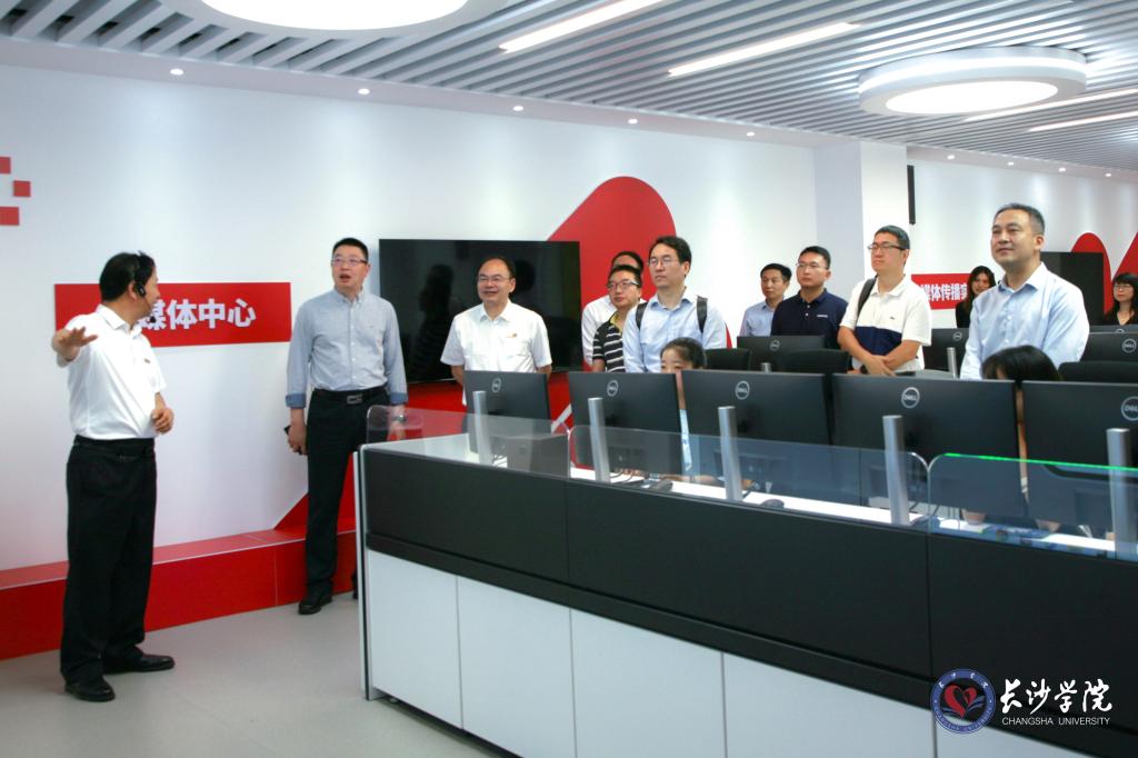 党委委员、副校长、马栏山新媒体学院党总支书记何利华向与会人员详细介绍了我校建设马栏山媒体实验室的相关工作基础和设想。与会人员还就马栏山媒体实验室的人才培养、建设目标、学科科研等进行了深入交流讨论,并实地走访考察了马栏山新媒体学院全媒体实验实训中心和短视频工厂、学校东校区规划用地。