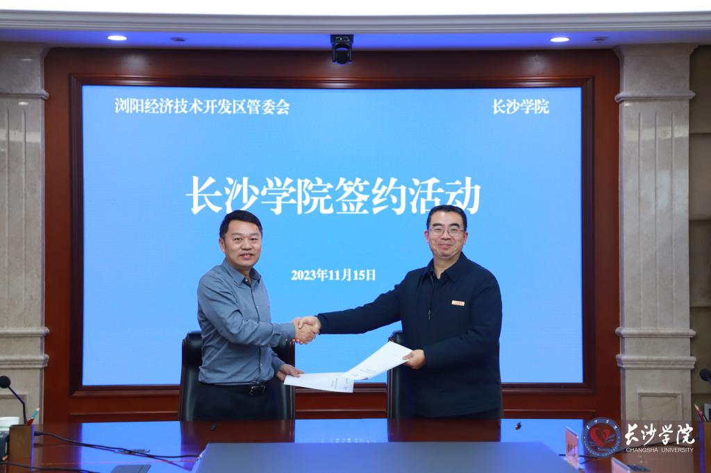 会上,校园企各方还就资源共享、人才共用等方面进行了深入交流。随后,长沙学院和浏阳经济技术开发区就进一步深化合作签订了框架协议。