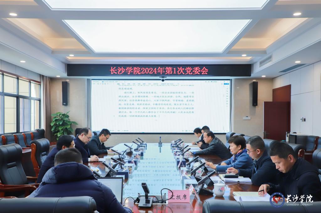 会议指出,新年前夕,习近平总书记发表二〇二四年新年贺词,回顾了2023年极不平凡的发展历程,展望了新一年更加美好的前景,既饱含着深情、更蕴含着力量,温暖人心、铿锵有力、催人奋进。新年贺词充满着自信自强的力量,为我们接续奋斗注入了强大动力;展现了不惧风雨挑战的魄力,让我们增添了攻坚克难的勇气;彰显了推进中国式现代化的决心,为我们干事创业指明了方向;饱含着真挚深厚的为民情怀,对我们做好学校工作提出了更高要求。我们要深刻领悟“两个确立”的决定性意义,坚决做到“两个维护”,全面落实立德树人根本任务,加快推进建设特色鲜明的高水平应用型地方大学,以更好的业绩、争取更大的荣光,奋力推进学校高质量发展!