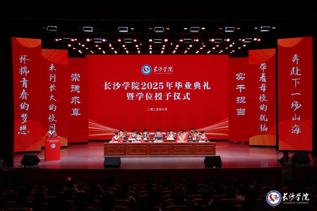 6月16日,长沙学院2025年毕业典礼暨学位授予仪式在学生活动中心举行。3952名长大学子圆满完成学业,即将开启人生新航程。全体在家校领导,学位授予导师,各职能处室、教辅部门主要负责人,各二级学院党政班子成员,毕业班辅导员、班主任,以及2025届毕业生代表共同见证了这一重要时刻。典礼由党委书记杨小云主持。