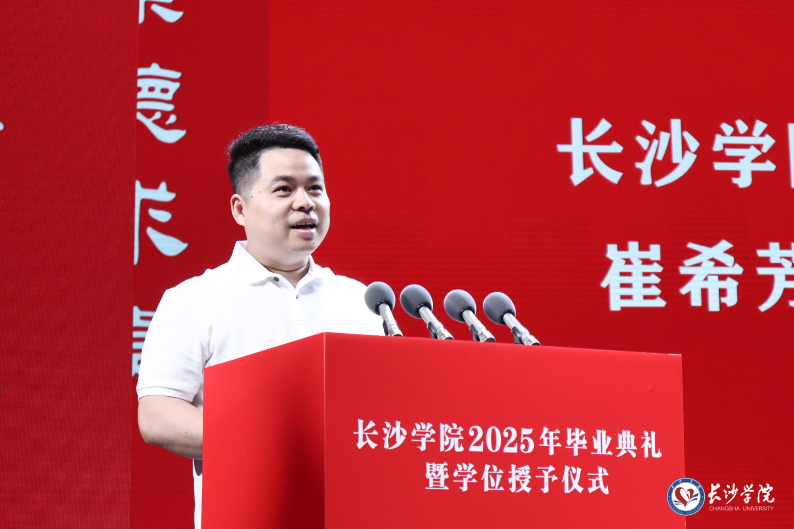 国家奖学金获得者、湖南省优秀毕业生、马栏山新媒体学院向宇轩同学,法学院院长童伟华教授,长沙广电数智融媒科技有限公司总经理崔希芳分别作为优秀本科生毕业生代表、教师代表、校友代表依次发言。