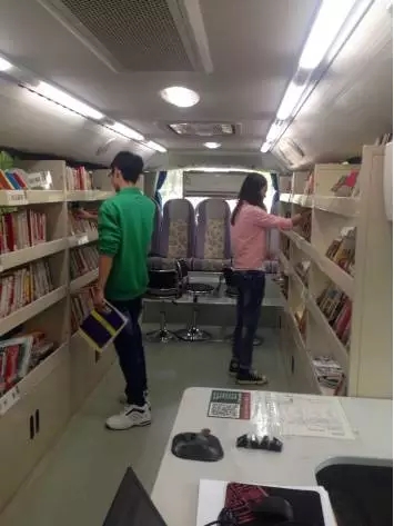 4月27日,长沙图书馆的大巴车来到长沙学院,他和她上了图书车,他习惯向左走,她习惯向右走。