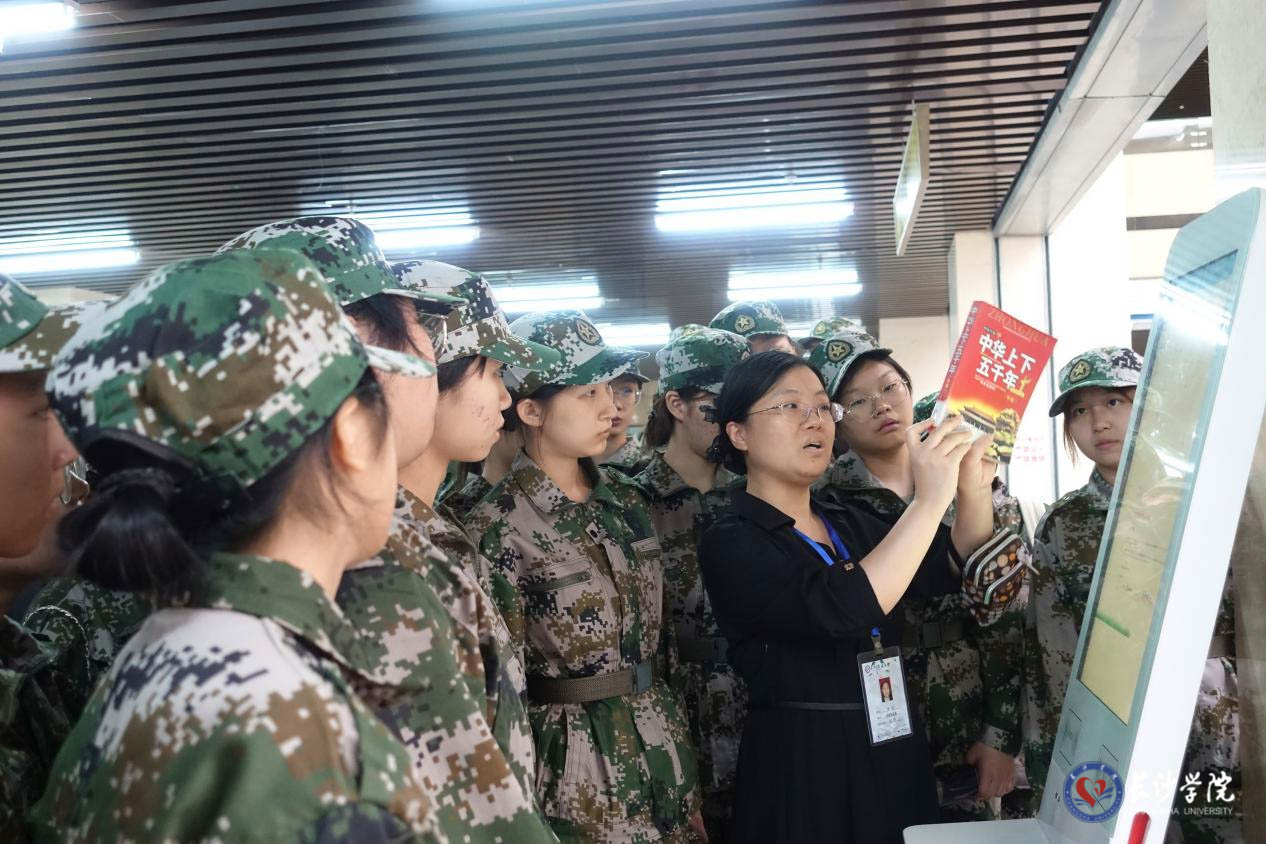 此外,为提升新生的美学素养,帮助新生更好了解网红长沙的前世今生,图书馆在一楼中庭举办《网红长沙的时光记忆——<老长沙全景图>》画展。作品由湖南省美术家协会理事、湖南省油画学会理事、我校艺术设计学院原院长柳玉教授创作。作品用长卷的形式,生动展现了80多年前的长沙城。图书馆分批次组织新生同学参观画展,跟随柳玉教授的画笔,一起探寻老长沙的景观建筑、市井风貌和寻常百姓众生相。