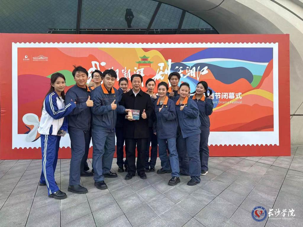 戏潮澎湃,剧话湘江。12月12日下午,2023第四届岳麓山青年戏剧节暨首届长沙大学生话剧节在梅溪湖国际文化艺术中心多功能剧场落下帷幕。我校关工委和马栏山新媒体学院创作的《当工人就要当个好工人》获最佳原创短剧奖,剧中艾爱国饰演者、2022级播音与主持艺术专业学生韩易霖荣获优秀演员奖,马栏山新媒体学院副院长荣斌获优秀指导老师奖,我校获得优秀组织奖。这是《当工人就要当个好工人》继荣获教育部2022年“读懂中国”活动全国高校最佳舞台剧奖第一名(全国仅5名)后的又一奖项。