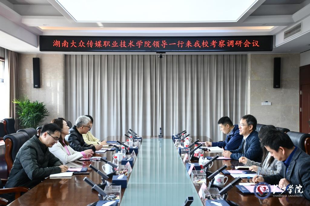 3月12日上午,湖南大众传媒职业技术学院副校长雷珺麟一行来我校调研交流,党委委员、副校长张世英出席并主持座谈会。