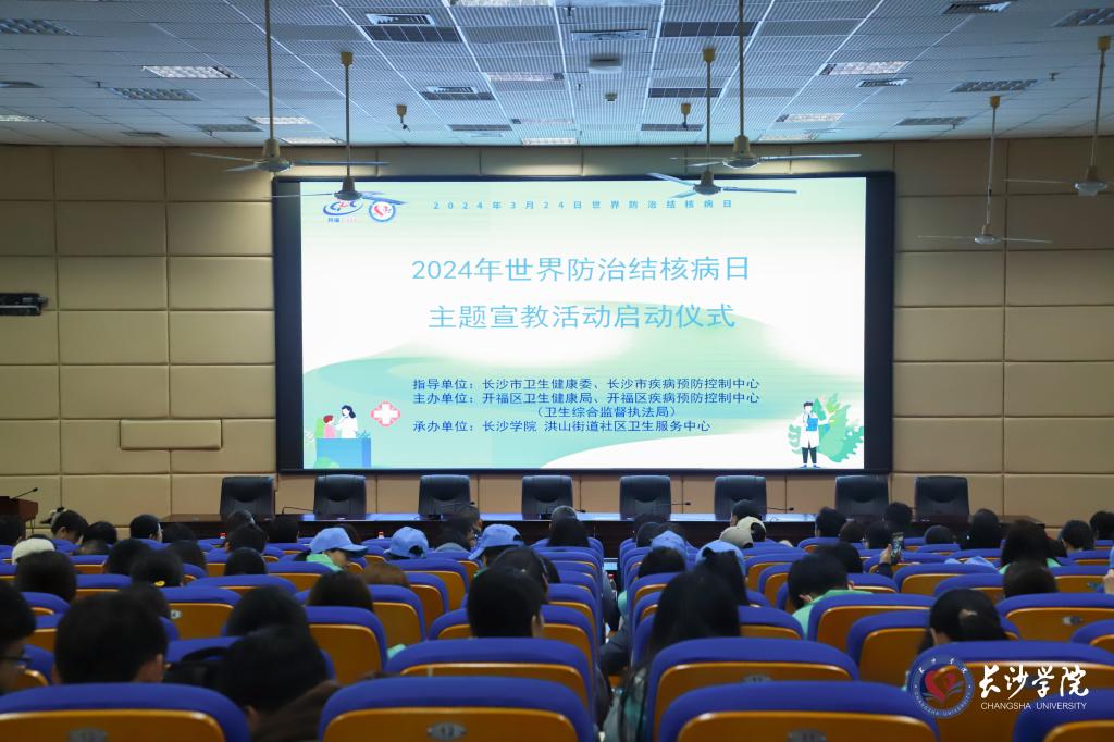 什么是结核病?它对人体造成哪些危害?怎样才能治好结核病?3月20日,在第29个世界防治结核病日即将来临之际,开福区与我校联合主办的2024年世界防治结核病日主题宣教活动启动仪式在致远楼学术报告厅举行。活动中,长沙市第一医院结核科主任医师鲁学明为师生和志愿者代表奉上了一场生动的讲座,进一步增强了大家对结核病及其防治的认识。