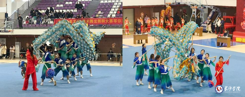 12月16日至23日,由湖南省教育厅主办的2024年湖南省大中学生武术和舞龙舞狮比赛在长沙轨道交通职业学院体育馆举行。来自全省76所大中学校,99支参赛队伍,1361名运动员齐聚一堂,共赴这场体育盛会。我校舞龙队24名运动员,在男子规定、女子规定、女子竞速项目中斩获2金1铜,并获得团体总分第六名;我校武术队8名运动员,在初级拳、初级棍、初级刀、初级枪、对练项目中斩获2金3银,并获得甲组团体总分第二名。