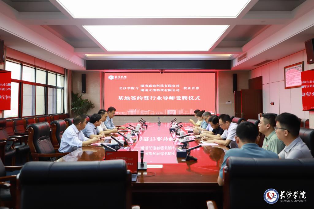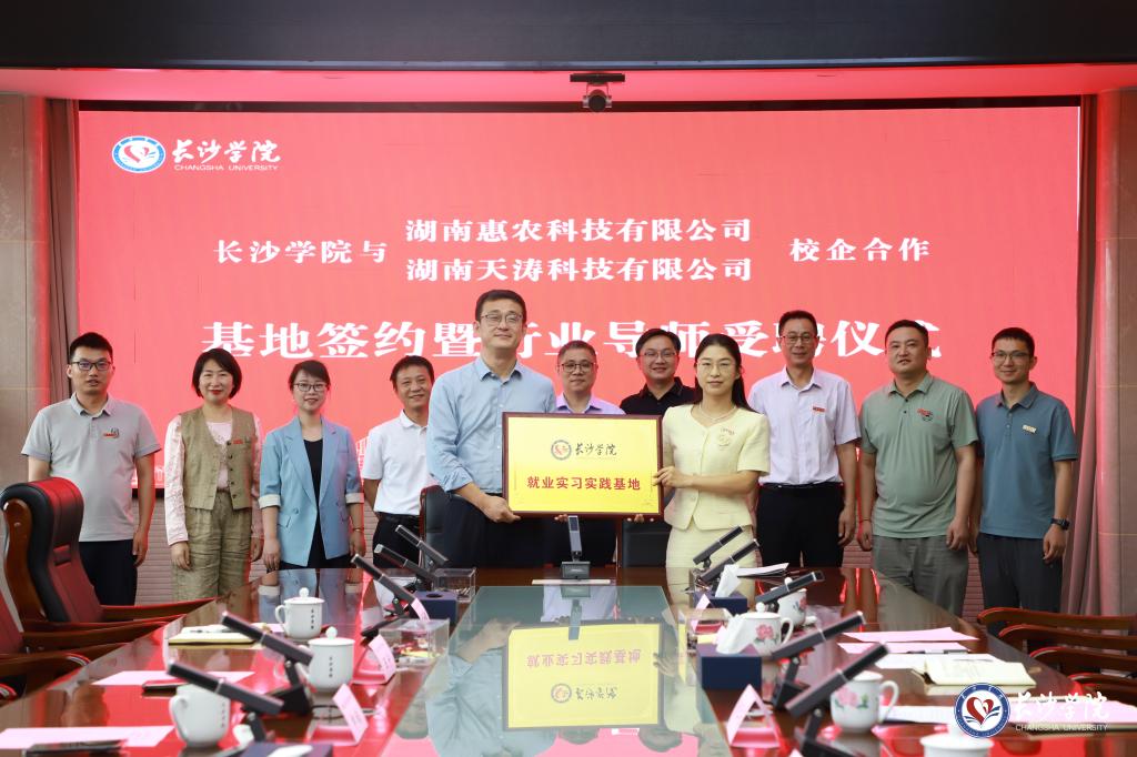 5月15日,我校数学学院与湖南惠农科技有限公司、湖南天涛科技有限公司在长盛楼4001会议室举行就业实习实践基地合作协议签署暨授牌仪式,并正式聘任5位来自惠农科技、天涛科技的企业高管担任行业导师,开启校企协同育人新篇章。党委委员、副校长阳王东,湖南惠农科技有限公司总裁申斌、副总裁邓武杰,湖南天涛科技有限公司王宁等出席活动。