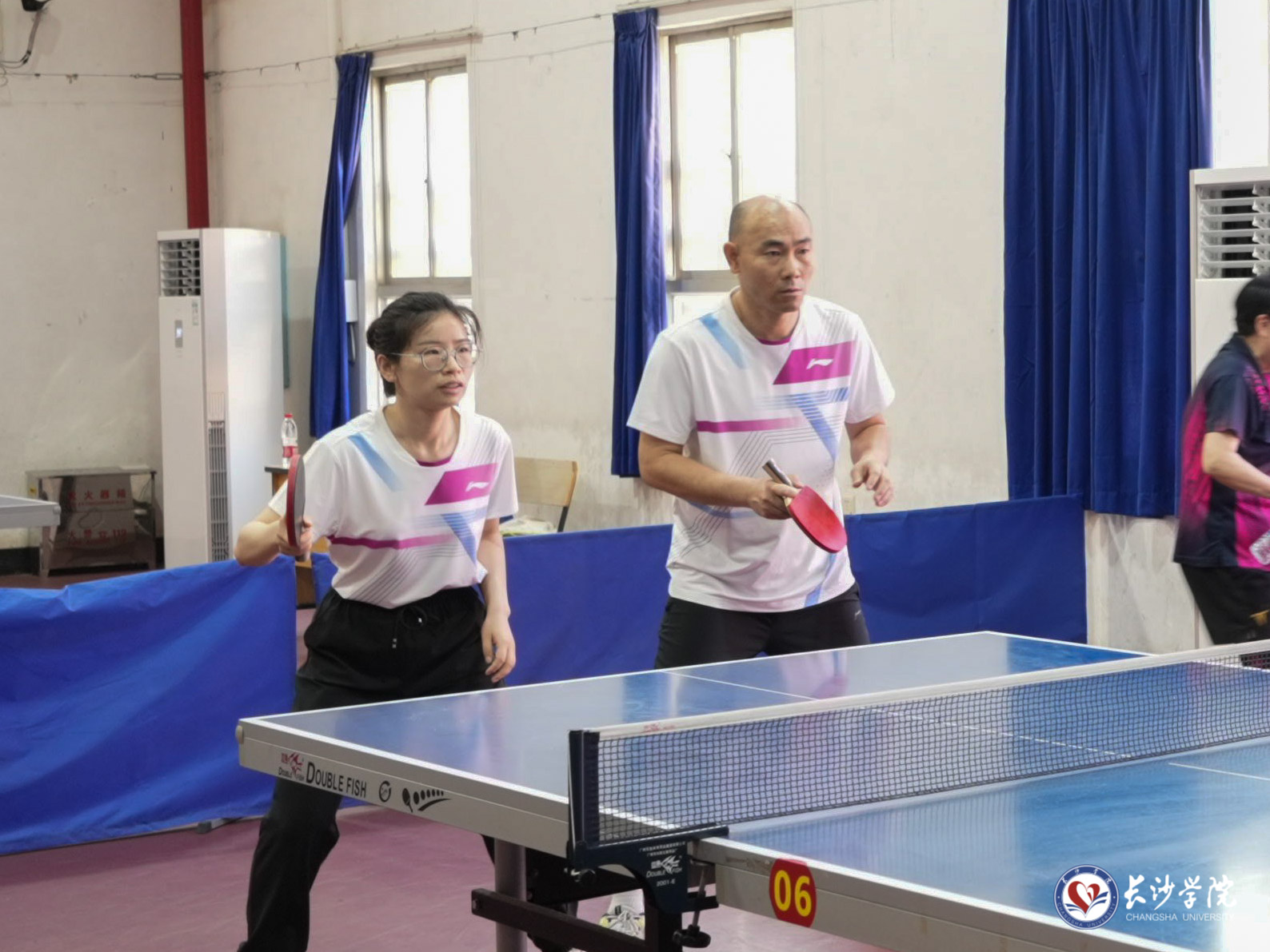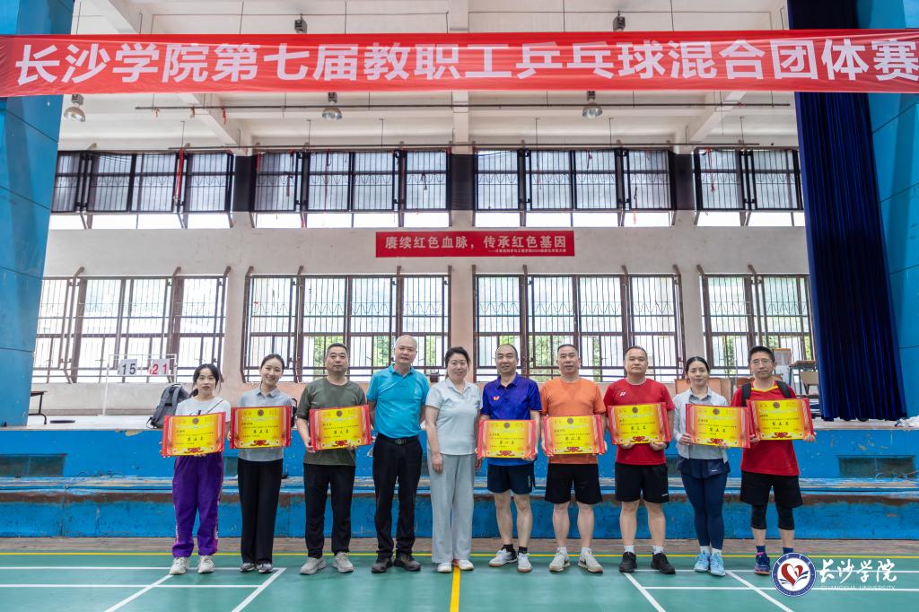 6月7日至8日,由校工会主办、体育学院承办的长沙学院第七届教职工乒乓球混合团体赛在永康体育馆举行。21支教职工代表队、300余名教职工运动员齐聚一堂、挥拍逐梦,以昂扬的精气神展现了蓬勃向上、团结协作的新风采。党委委员、副校长何利华出席开幕式并宣布比赛开幕。