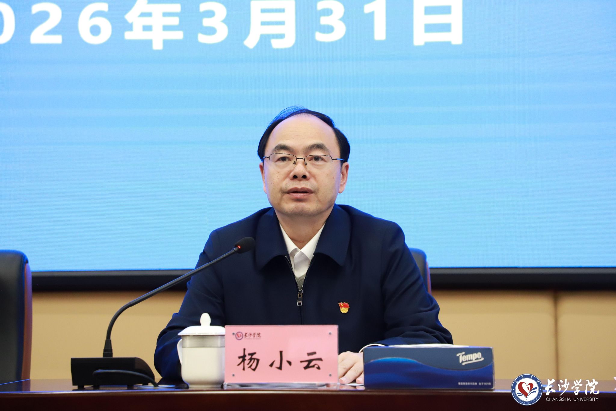 3月31日,学校召开2026年全面从严治党工作会议,深入学习贯彻习近平总书记关于党的自我革命的重要思想,总结2025年学校全面从严治党工作,部署安排2026年重点任务。党委书记杨小云出席并讲话,党委委员、纪委书记丁文作工作报告,党委副书记何利华主持会议。