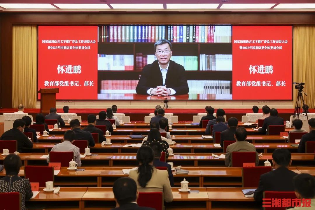 三湘都市报·新湖南客户端5月10日讯(全媒体记者 杨斯涵 黄京 实习生 龙思汝)普及率超过80%,实现了跨越式发展,全国普通话发展取得了历史性成就……今日,国家通用语言文字推广普及工作表彰大会暨2023年国家语委全体委员会议在北京召开,教育部党组书记、部长怀进鹏作视频讲话。湖南省教育厅党组书记、厅长夏智伦,湖南省教育厅党组成员、总督学郭建国在湖南分会场参会。