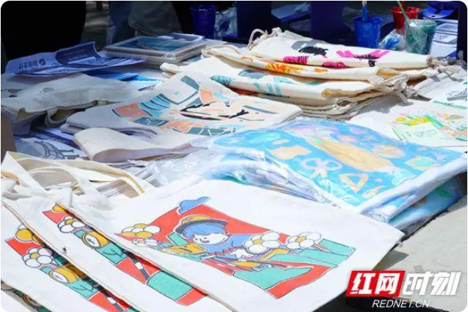 现场活动包括两个环节,第一个环节手工版画印刷体验活动,小朋友和家长将在同学们的指导下体验从设计图形转印到手提袋、体恤、卡片等承印物上的过程;第二个环节为文创产品义卖活动,同学们把自己在课堂上设计制作的版画、文创进行出售,所得收入都将捐赠给长沙县助乐公益困境儿童家庭援助中心。